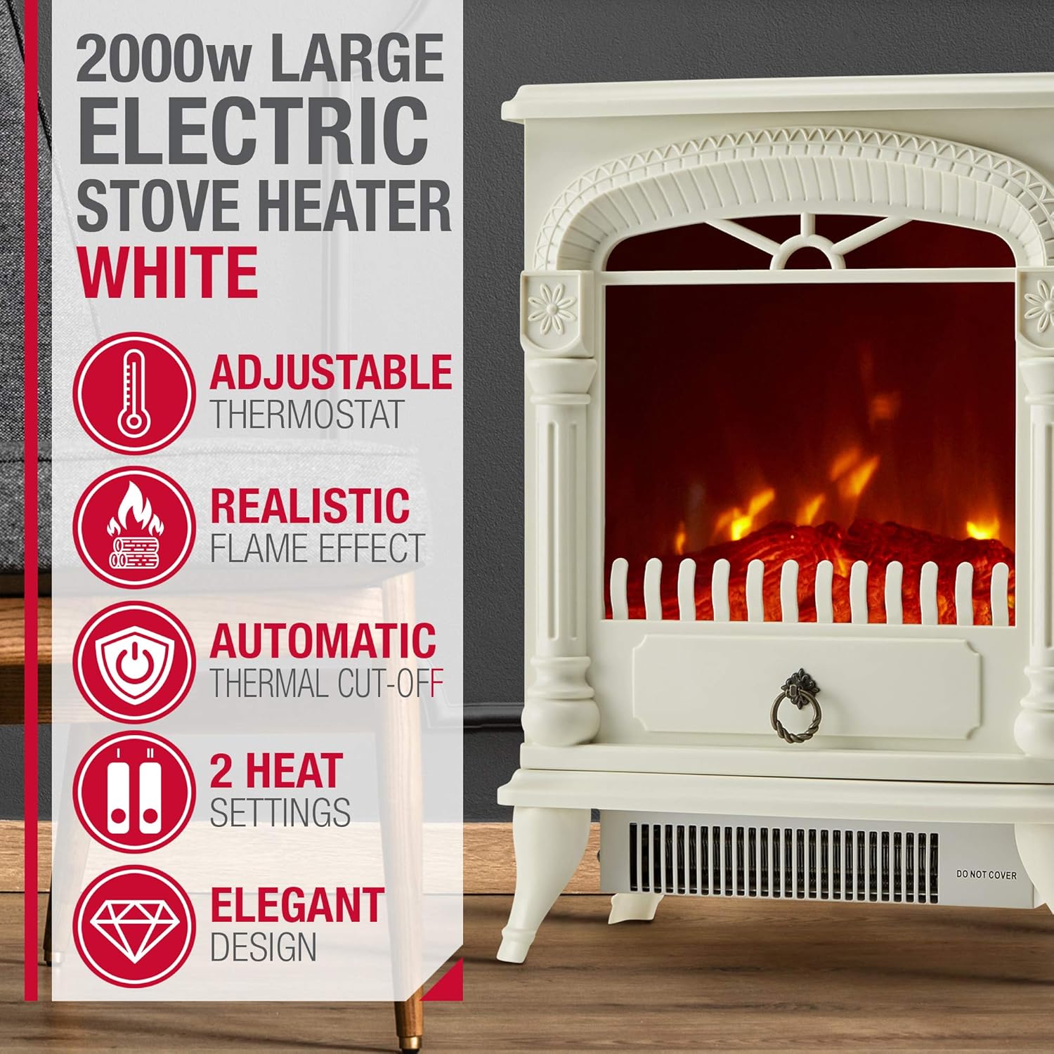 Firebox inserted into existing hearth space. Best white electric stove fireplace & heater. Get cozy and warm in the colder months by adding an electric fireplace to your home. These types of electric fireplaces are freestanding and so they can be placed in many locations around your home. These stoves are very good because you do not need to be concerned about ventilation or this is a very powerful fireplace heater with a beautiful design. An electric fireplace is ideal if you can not install a chimney and all the other complexities associated with lighting fires indoors. Advantages of using an electric fireplace stove the duraflame electric infrared quartz fireplace stove with 3d flame effect is a stunningly beautiful heater designed to add an artistic touch and warmth to your rooms. The best electric fireplace stoves are the ones that are kid and dog safe, because who wants to have something in their living room that you may brush against one day and hurt yourself, or burn your so, we designed a top 10 list of the best quality electric fireplace stoves for your living room. Enjoy free shipping on most stuff, even big stuff. Shop wayfair for all the best electric fireplaces & stoves. These indoor heaters move easily the flame effect is reflected on the back of your firebox instead of the inside of the electric fireplace unit. Choose traditional stove designs for the family room. Stunningly realistic flame effect fires with the convenience of electric.