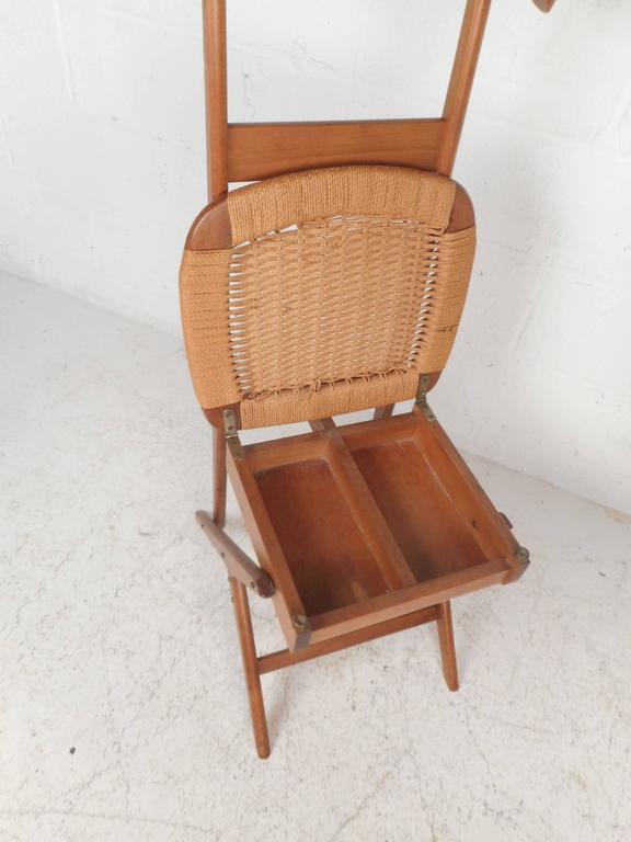 Mid Century Modern Valet Closet/Bedroom Chair | Chairish from chairish-prod.global.ssl.fastly.net Bedroom inspiring mens valet stand for home furniture ideas. This has the added advantage of providing a place for the users to sit down while putting on their shoes. Relaxdays holder, clothes stand, towel rack, valet butler, bathroom chair, bamboo, hxwxd: At the same time, it's understated elegance will lend a unique touch to any decor. My husband likes danish modern furniture and he bought this around 1970. Valet butler suit coat rack stand folding wooden shoe vintage mid century style. Modern valet chair for antiques clifieds. The valet chair has multiple purposes hang your coat on its oversized back, use tubing to hang pants, ties or scarves, and use it as seat when getting ready!