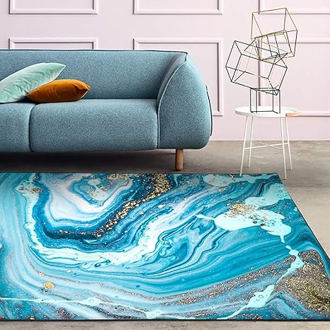 Grey and blue living room, description: