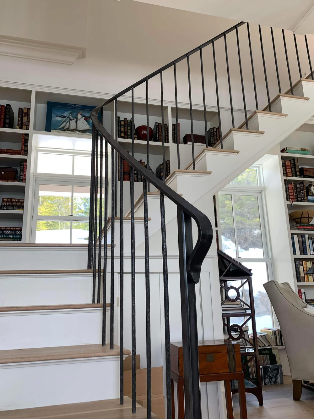 Bookshelf Stair Railing : Elephant Buffet How To Keep From Falling Down A Staircase / For instance, a black handrail would be striking against a brick wall, and a bronze handrail could pair well with metal wall paneling.